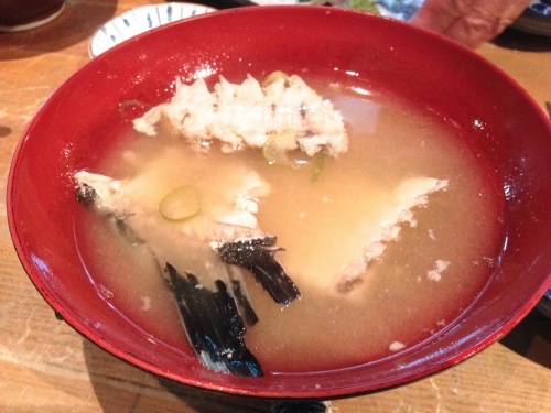 飲んだ後にラーメン食べたくなりますが、ラーメンの代わりにあら汁はいかがでしょうか。健康にも良さそうだし、新鮮なアラで作るお味噌汁って、ホントおいしー。