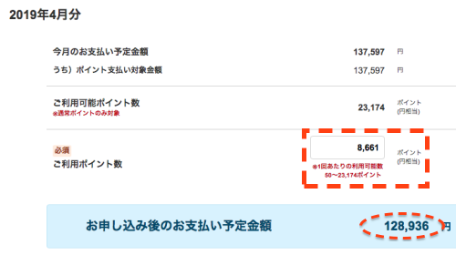 今月の請求額の下にある「ポイントで支払い」を選択します。